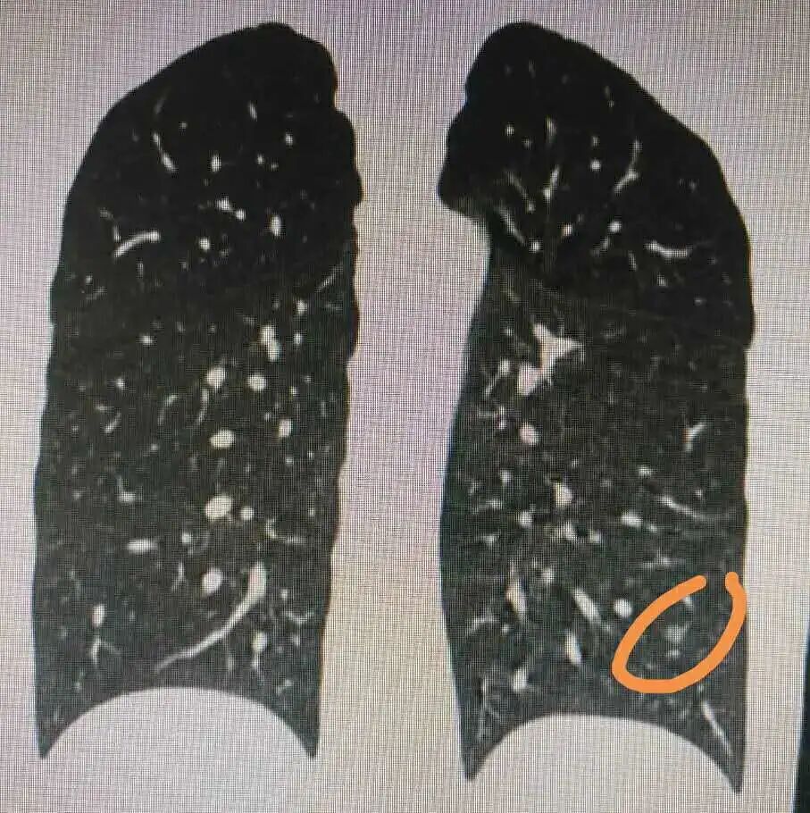 2020年5月,李小姐在一次体检中意外发现左肺下叶外基底段磨玻璃样结节(GGO),直径约4mm,9月底复查时发现结节不但没有消散,还有所增大,最大直径达6mm。李小姐心情忐忑地来到我院胸外科就诊,王昊飞主任仔细阅片及询问病史后,详细解释了什么是磨玻璃样结节,以及病理类型、手术方式及预后。“该结节为早期肺癌可能性大,建议手术切除,既能根治切除结节,又能明确病理类型,且预后好,无需术后辅助治疗,仅定期随访。”王昊飞主任的一番话打消了李小姐的顾虑。